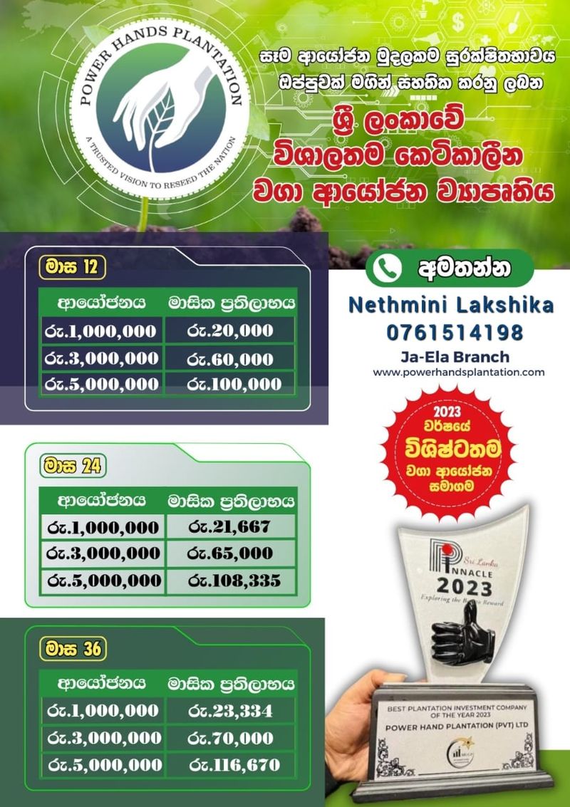 💠 ආයෝජනය රු. 5.000.000 මසික ප්රතිලාභය රු. 100.000